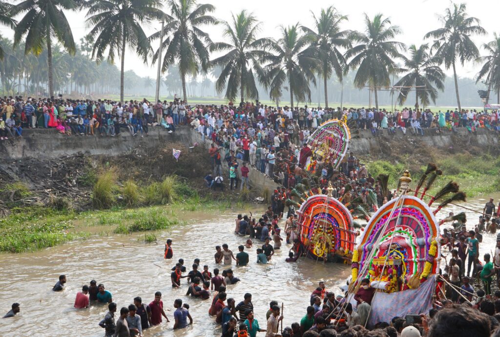 One of the most awaited and breathtaking moments of the festival is the arrival of the Prabha from Gangalakurru Agraharam, which must cross the Kowsika River before reaching Jaggannathota. Thousands of devotees gather on the riverbanks, eagerly watching this sacred moment. The sight of the Prabha crossing the river fills people with immense joy, it is an unforgettable experience.