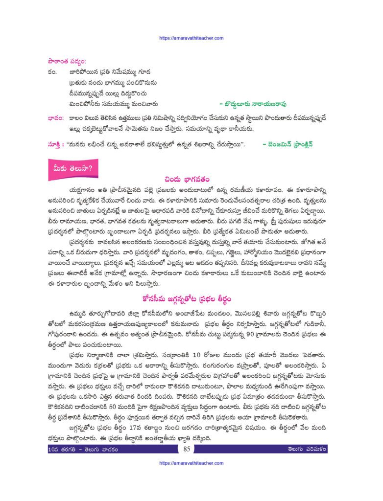 A short story about the Jagannathota Prabhala Theertham in the Telugu text book ‘Telugu Parimalam’ issued to 10th class students